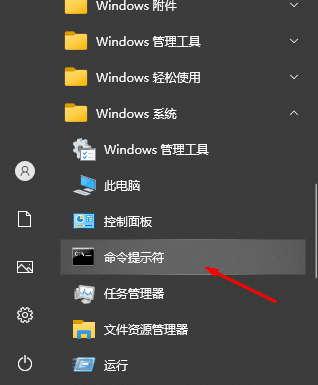 2、展开Windows系统文件夹(或者搜索命令提示符),点击命令提示符。